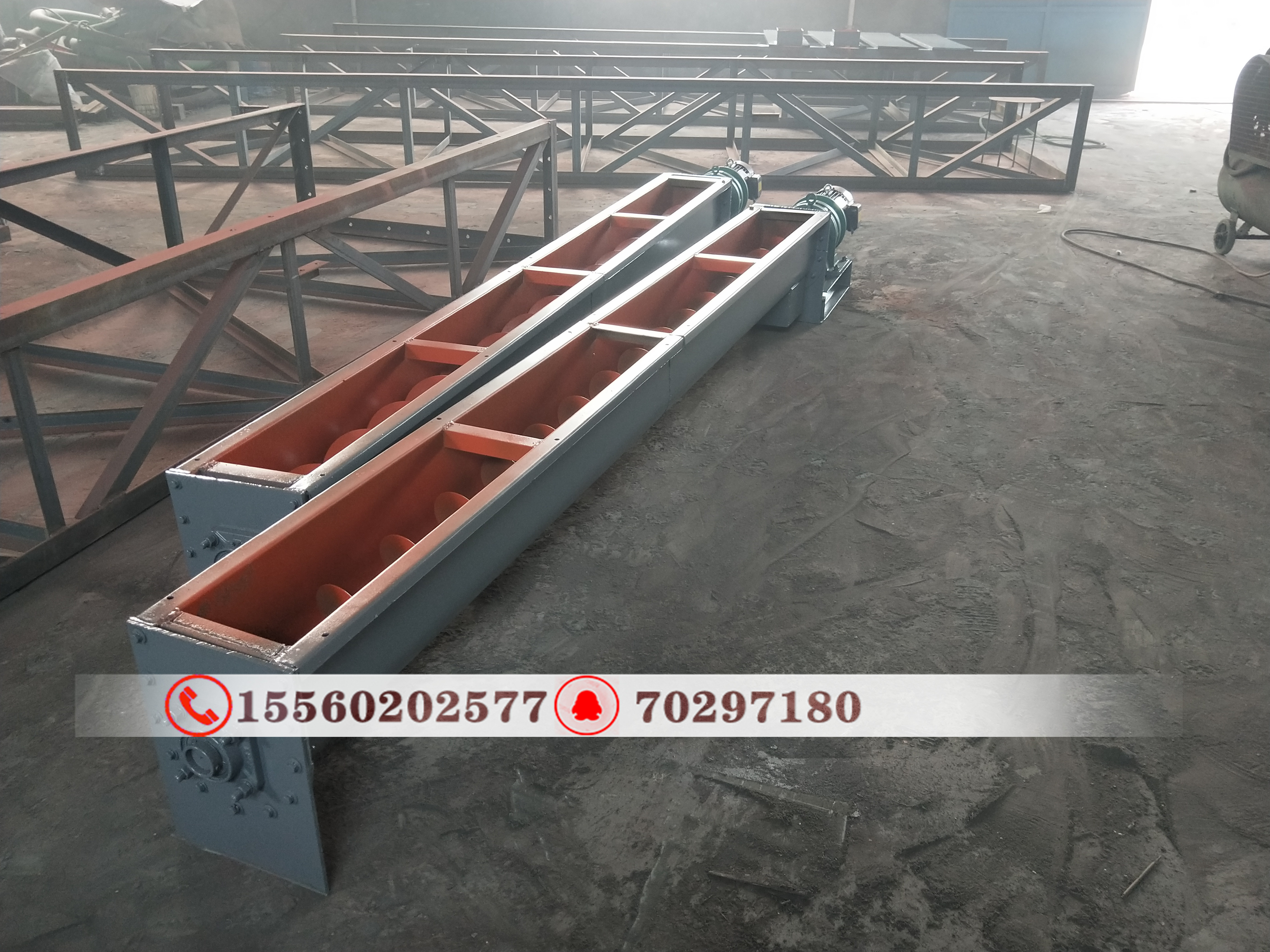 兩臺U型螺旋輸送機發往山東濟南,輸送機整機質保一年,一年之內機器有任何的質量問題我們都是可以免費維修的。輸送機型號:LX350-8000。輸送機配套電機7.5KW。電機廠家常州。減速機型號:ZQ300-17.5.減速機品牌杭州與煌傳動。輸送機箱體厚4mm。螺旋葉片厚4mm。田經理請你按這個標準驗貨。